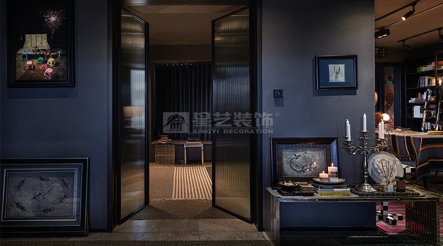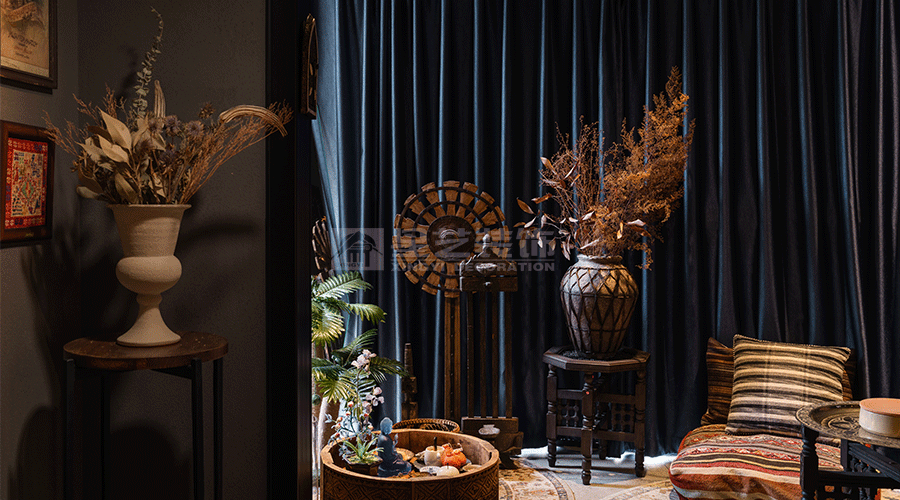 这套设计以复古艺术混搭风格为核心,通过深色基调、复古单品与艺术收藏的融合,打造出一个充满叙事感与个性的 “艺术藏馆式” 居所。