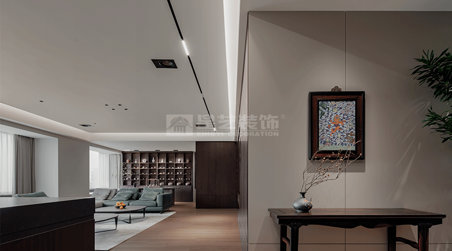 这套设计以现代新中式风格为核心,融合东方雅致与现代极简,通过材质、空间与细节的协同设计,打造出一个兼具文化底蕴与舒适质感的高端居所。